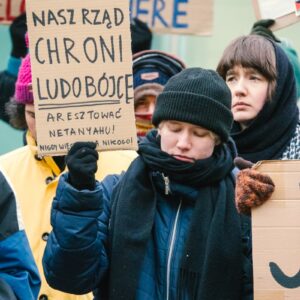 Był to nasz sprzeciw wobec skandalicznym decyzjom rządu RP, które mają na celu zapewnienie ochrony Benjaminowi Netanjahu – premierowi Izraela, zbrodniarzowi wojennemu dokonującemu ludobójstwa w Gazie, poszukiwanemu przez Międzynarodowy Trybunał Karny za zbrodnie przeciwko ludzkości! W związku z planowanymi 27 stycznia 2025 obchodami 80. rocznicy wyzwolenia Auschwitz-Birkenau, polski rząd deklaruje, że zapewni “wolny i bezpieczny udział w tych obchodach najwyższym przedstawicielom Izraela” i postanowił dać zielone światło na przyjęcie z honorami zbrodniarza wojennego odpowiedzialnego za ludobójstwo – w obozie, gdzie miliony ludzi straciły życie w wyniku Holokaustu.