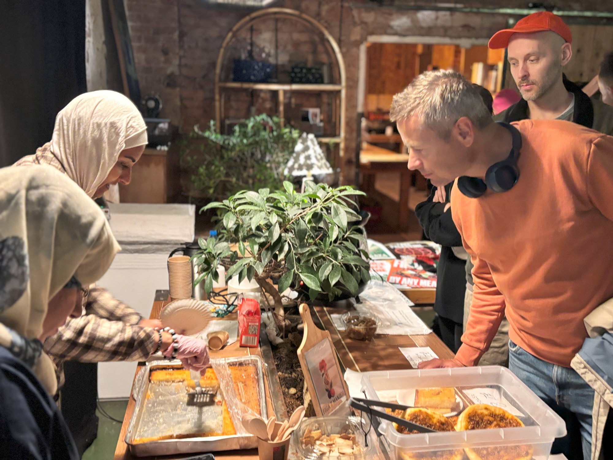 Szczególną częścią wieczoru była obecność pani Ali – ocalałej z ludobójstwa w Gazie – która przygotowała tradycyjne potrawy kuchni palestyńskiej. Serwowane dania cieszyły się ogromnym zainteresowaniem i szybko znikały ze stołów, a dochód z ich sprzedaży został przeznaczony na wsparcie dla Ali i jej rodziny.